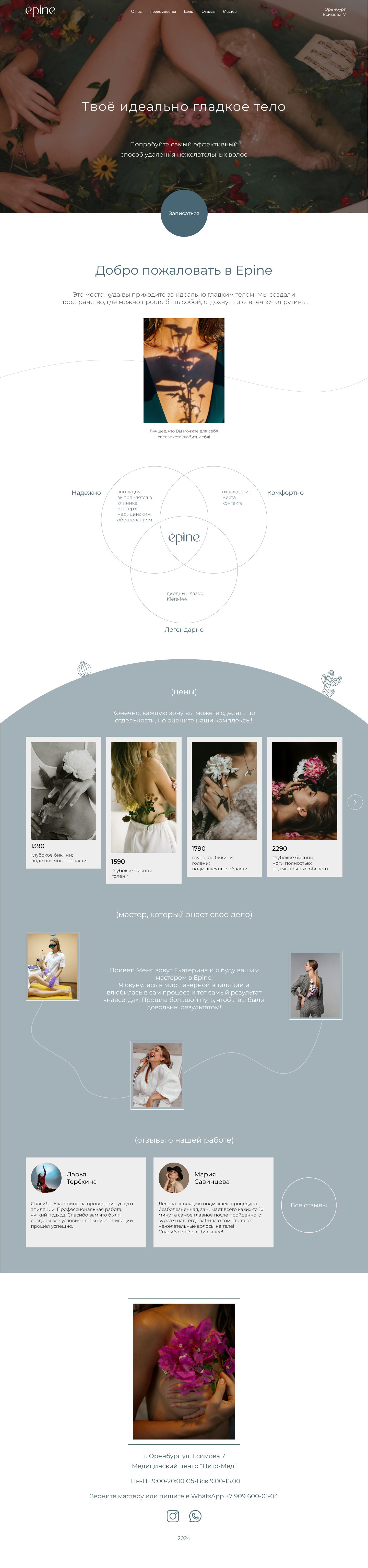 Website for the laser hair removal studio "Epine". The site leaves after viewing a feeling of lightness and maximum understanding.